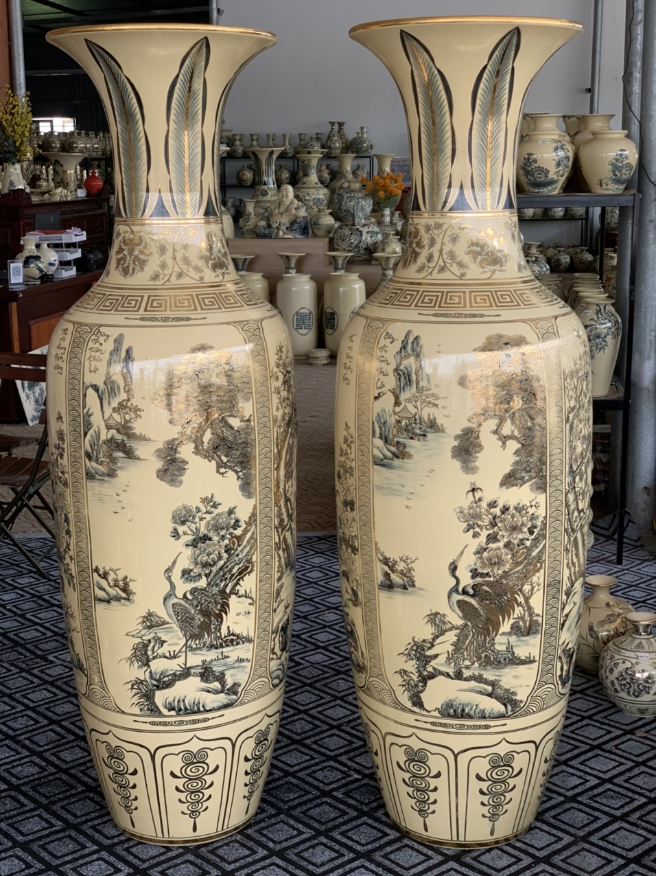 LỤC BÌNH TÙNG HẠC VẼ VÀNG 24K 1.6M GỐM CHU ĐẬU
