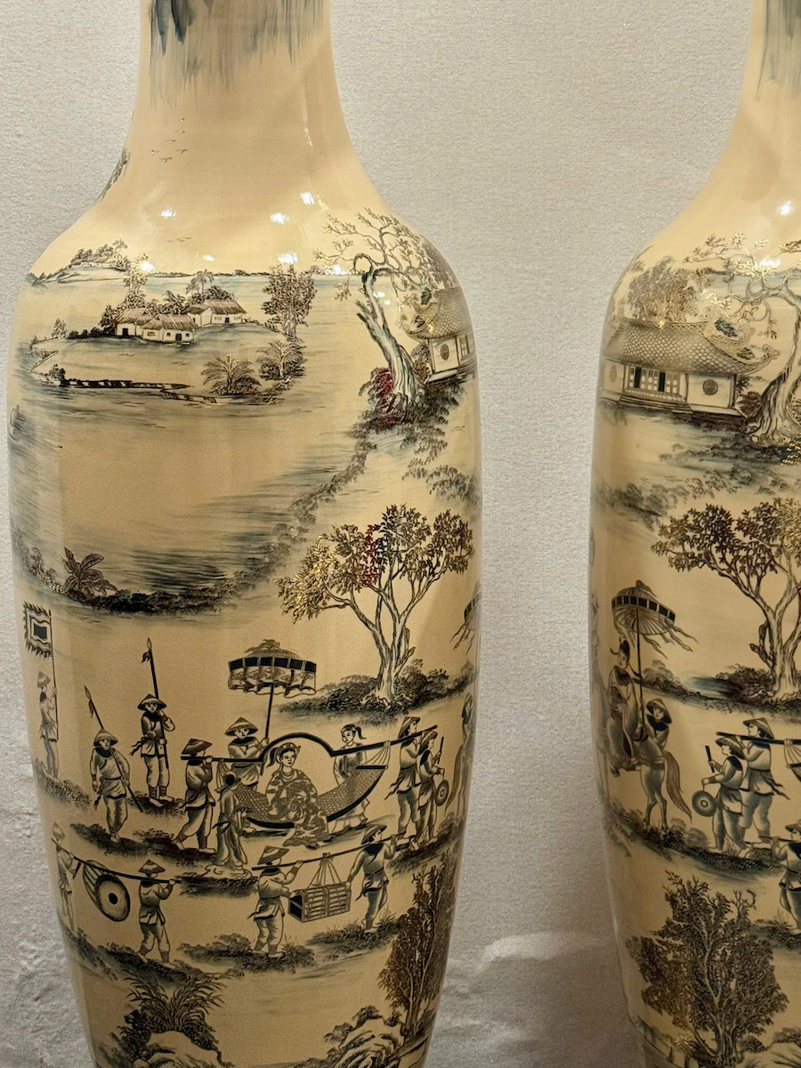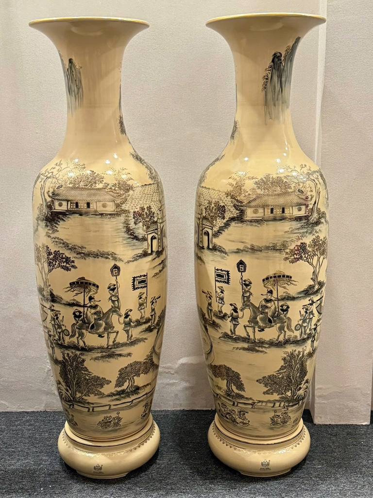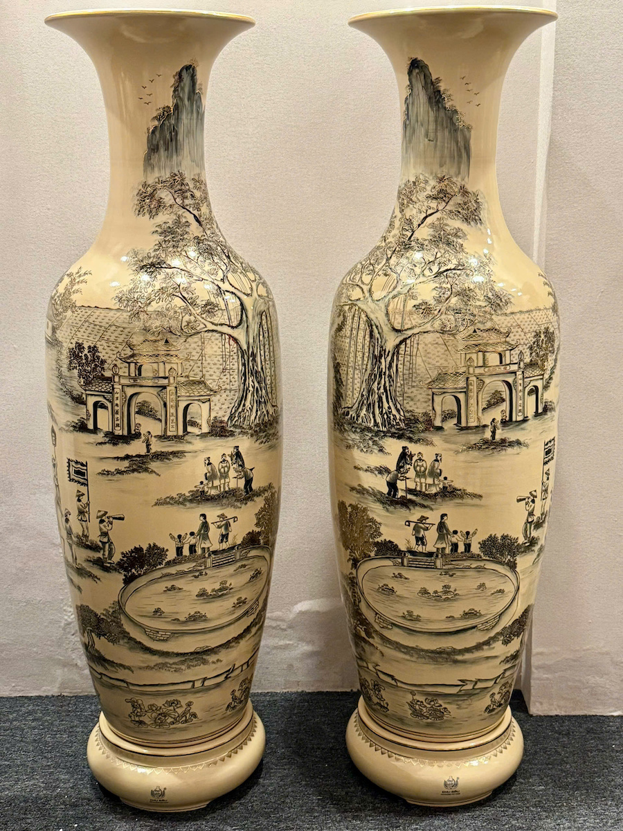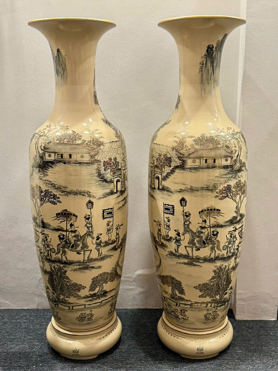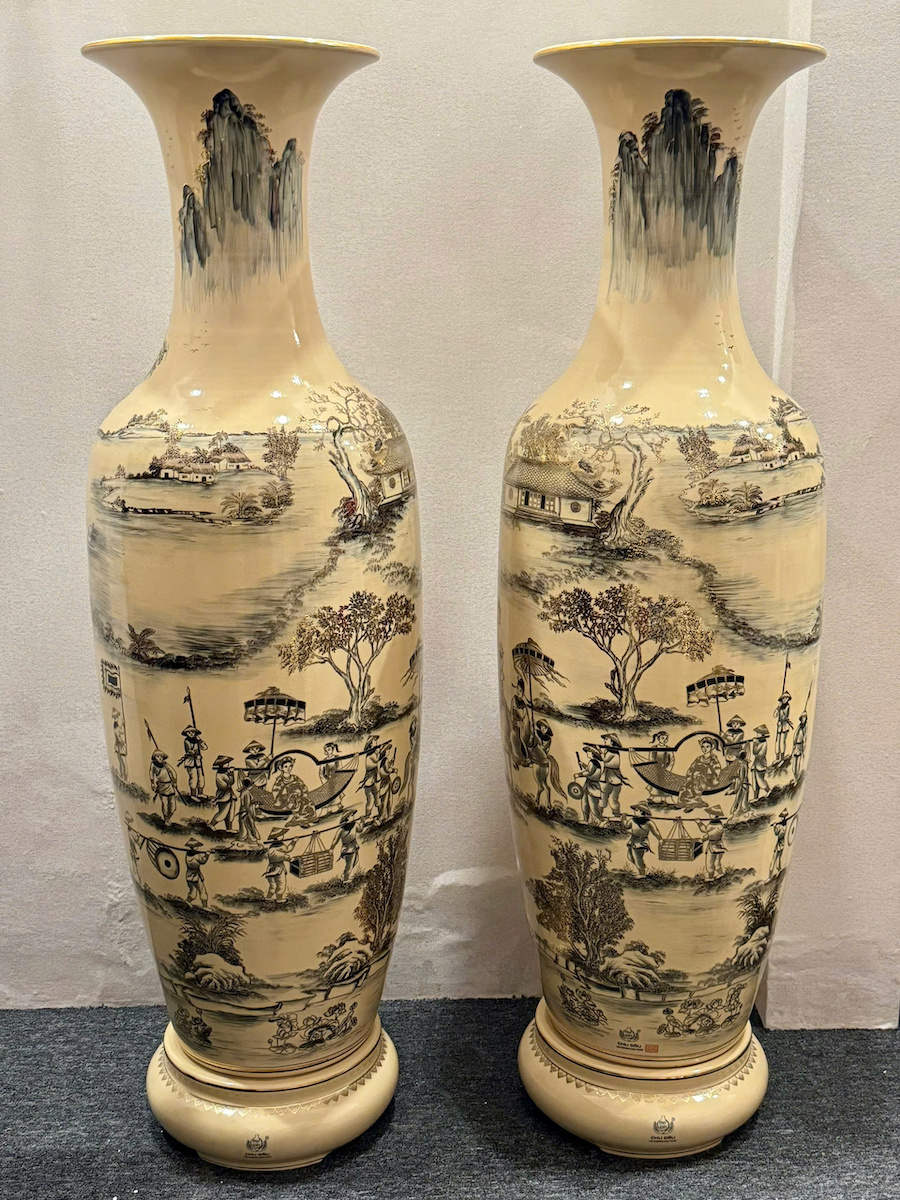✨ Lục bình Vinh Quy Bái Tổ cao 1,4m (cả đế 1,55m) – gốm Chu Đậu vẽ vàng 24K ✨