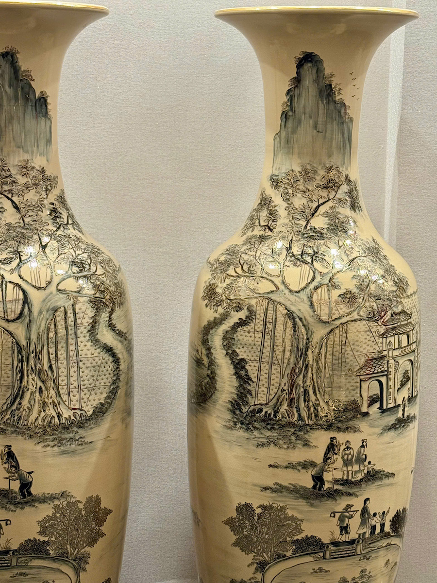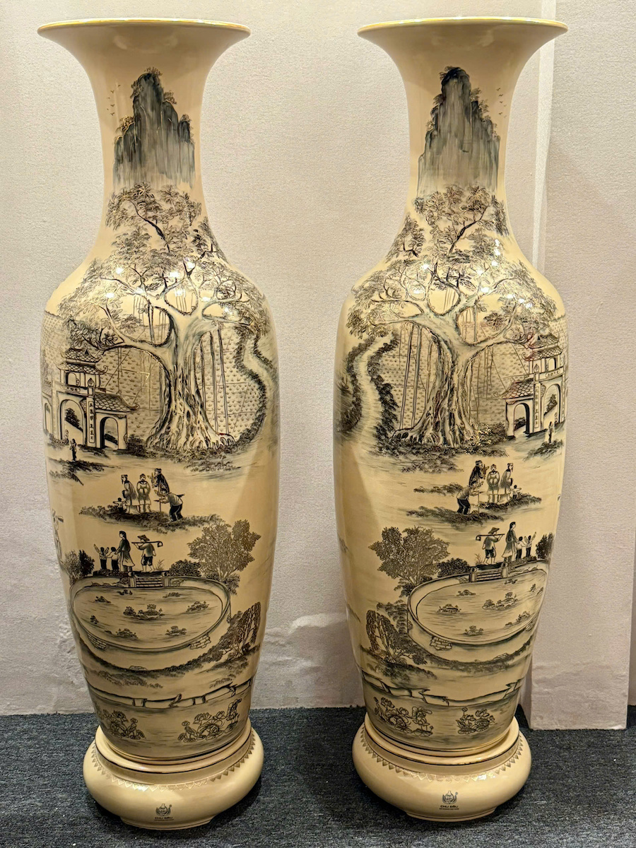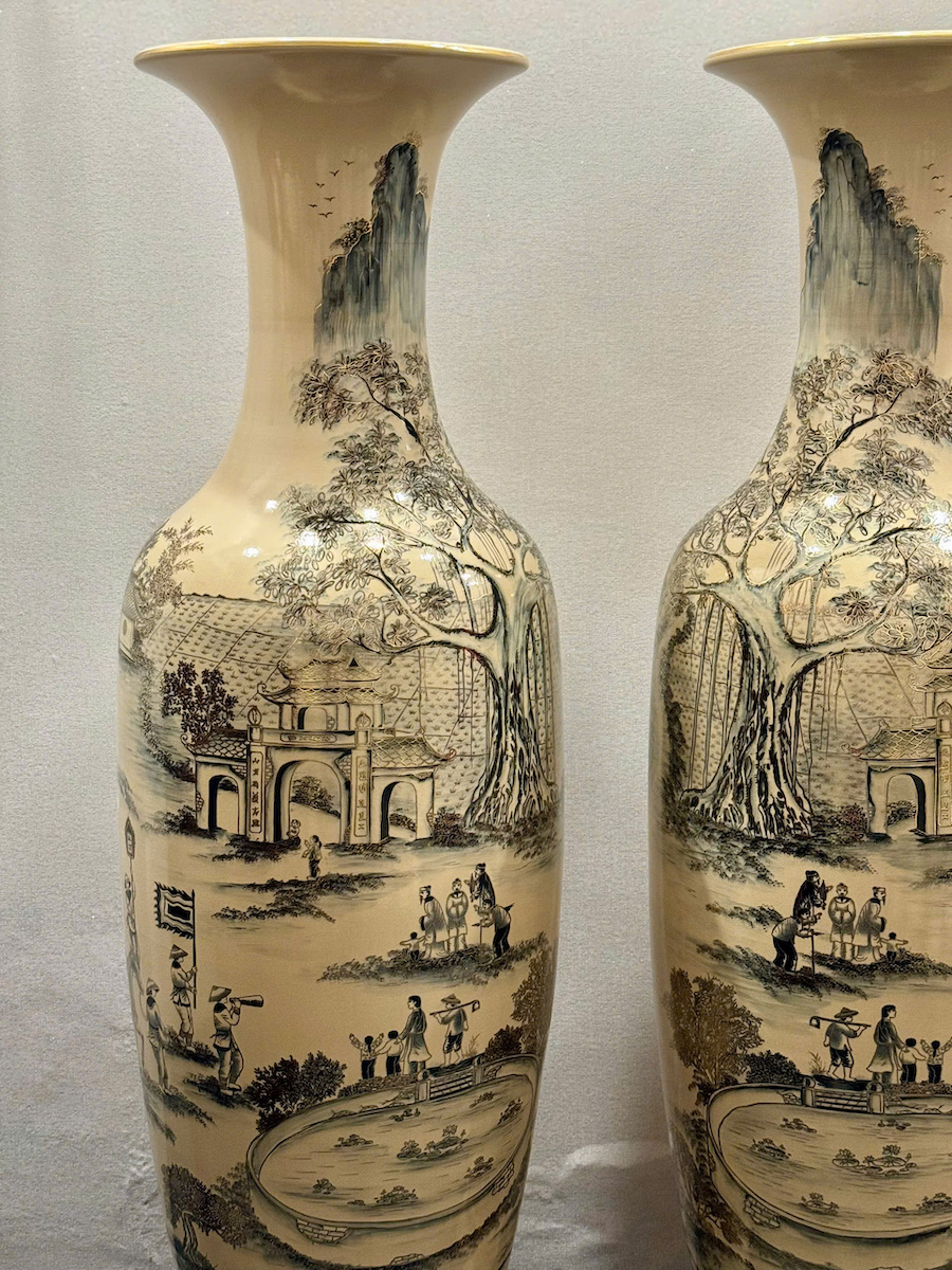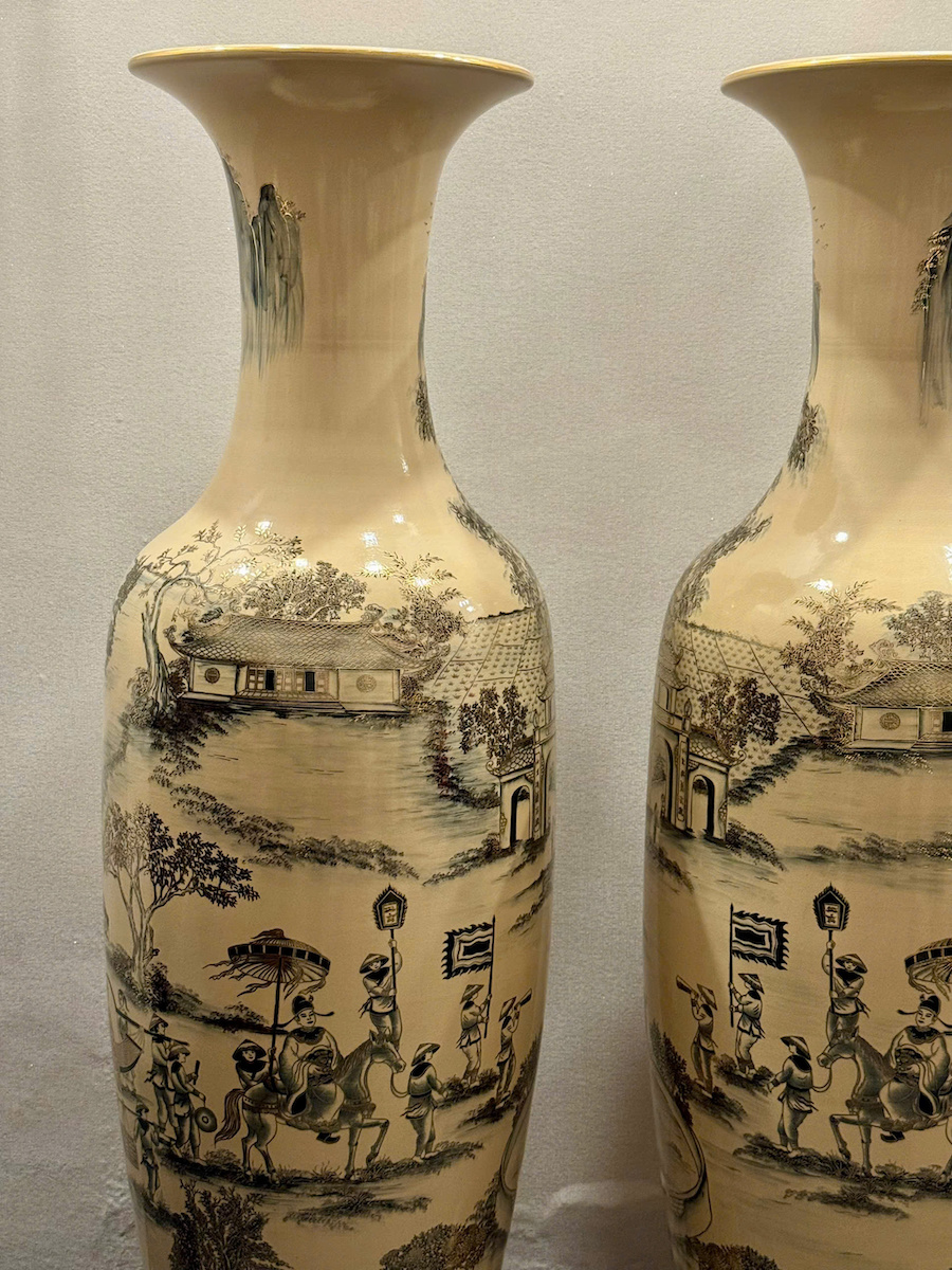 ✨ Lục bình Vinh Quy Bái Tổ cao 1,4m (cả đế 1,55m) – gốm Chu Đậu vẽ vàng 24K ✨