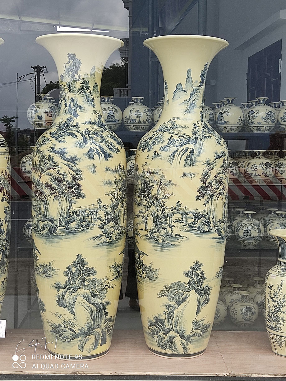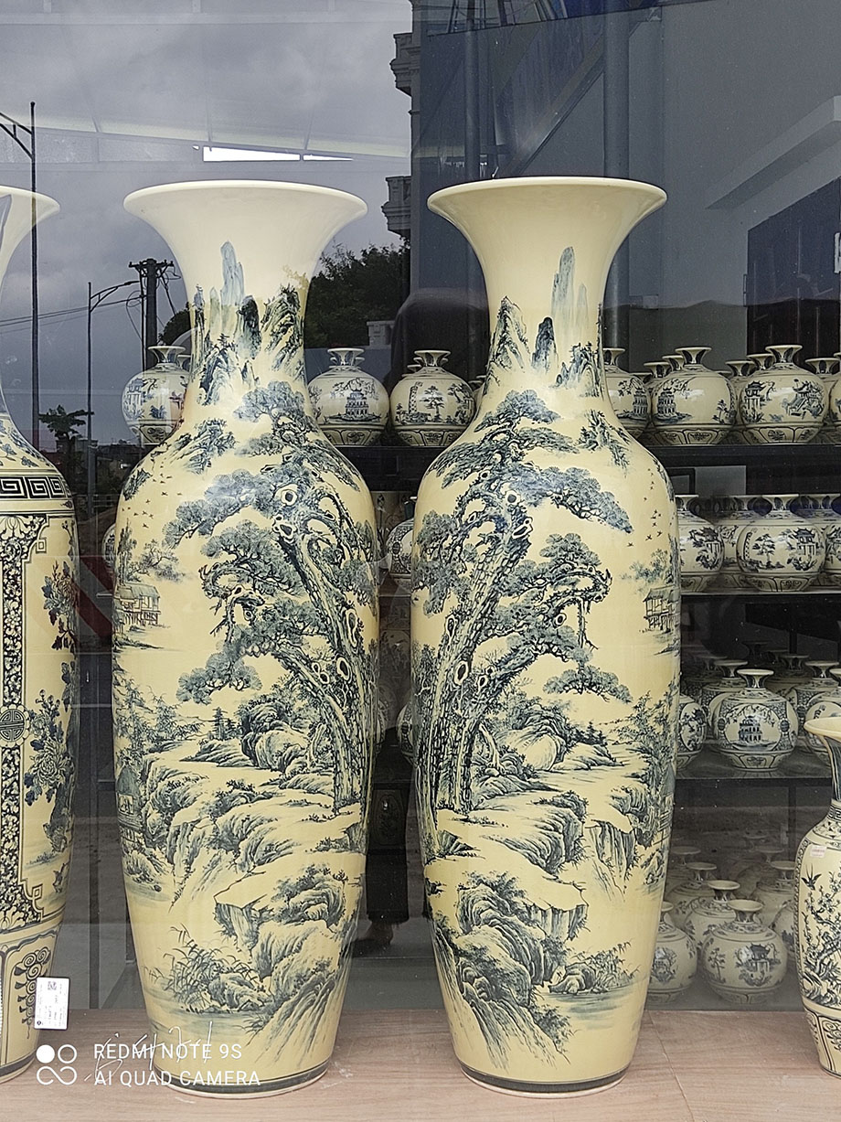 Lục Bình Sơn Thủy Hữu Tình 1.75m Gốm Chu Đậu Truyền Thống đây là một sản phẩm được nghệ nhân gốm Chu Đậu đặt rất nhiều tâm huyết trên từng sản phẩm, những đường nét vẽ như rồng bay phượng múa rất có hồn.
