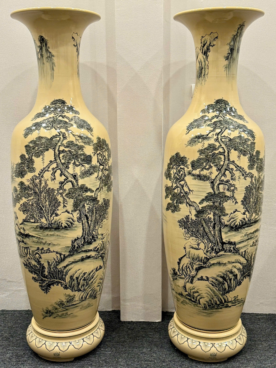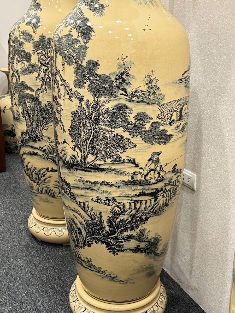 Lục Bình Sơn Thuỷ Hữu Tình Cao 1,57 mét Gốm Chu Đậu Truyền Thống