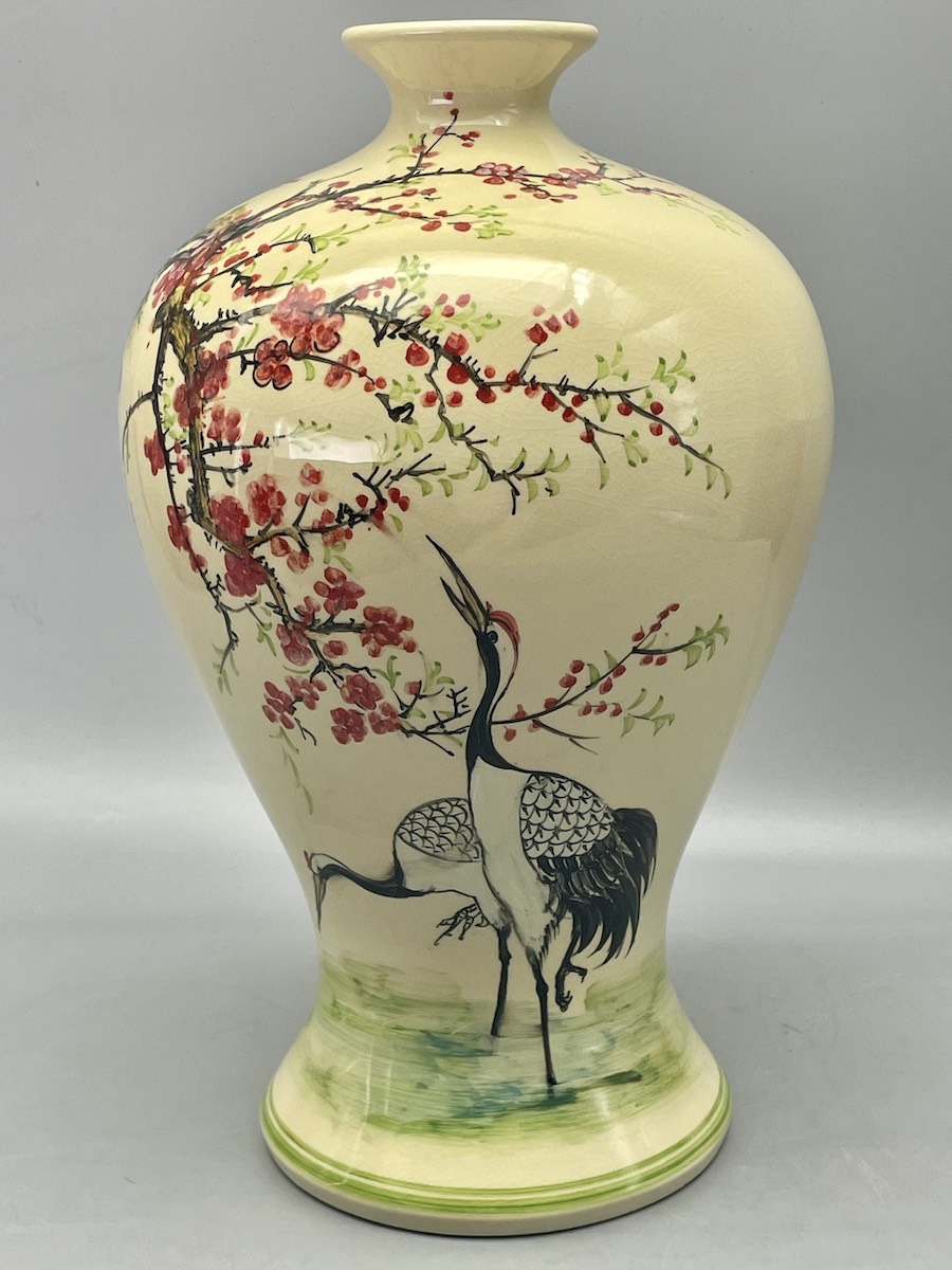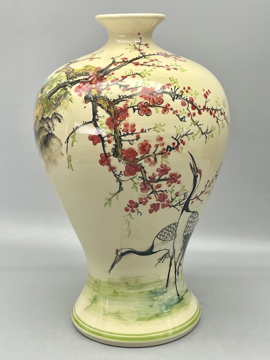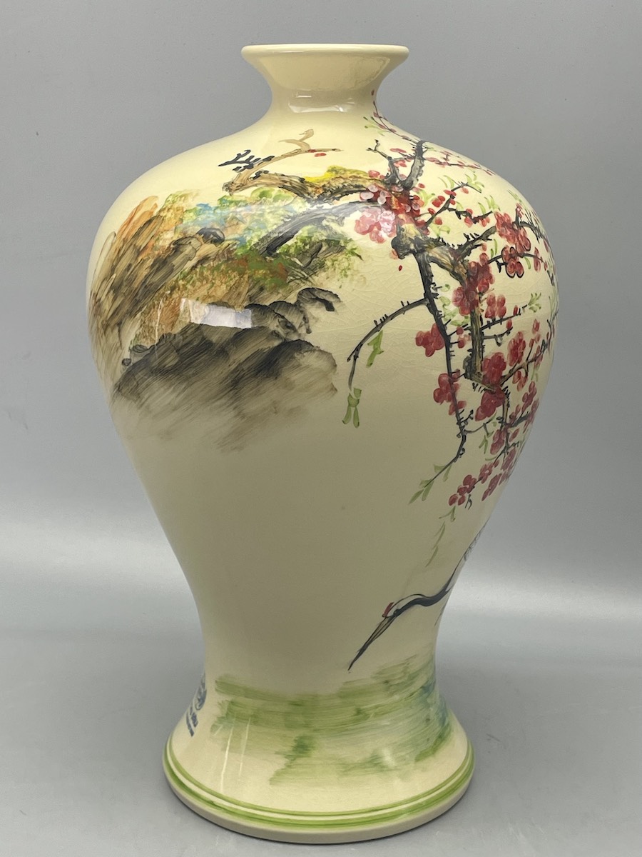 Mai Bình Tích Lộc Hạc Đào H43 Gốm Chu Đậu Vẽ Màu