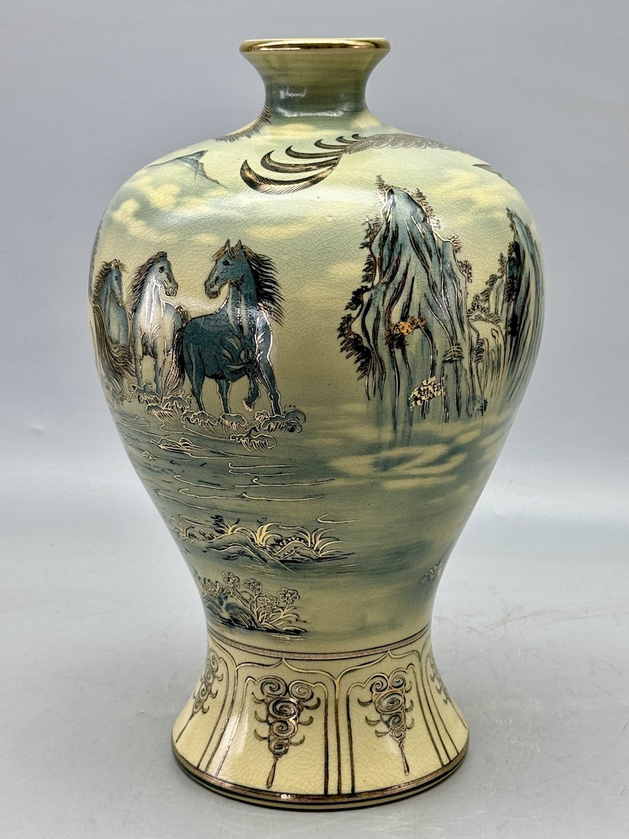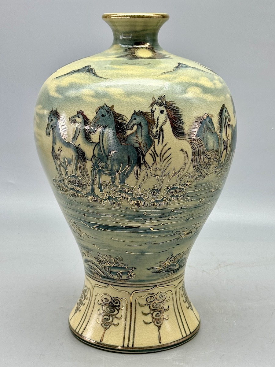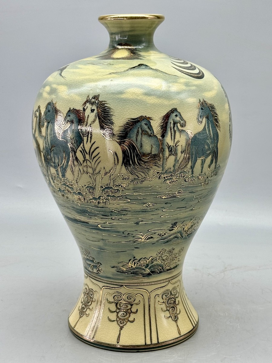 Mai Bình Tích Lộc Mã Đáo Thành Công 3D H38 Gốm Chu Đậu Vẽ Vàng