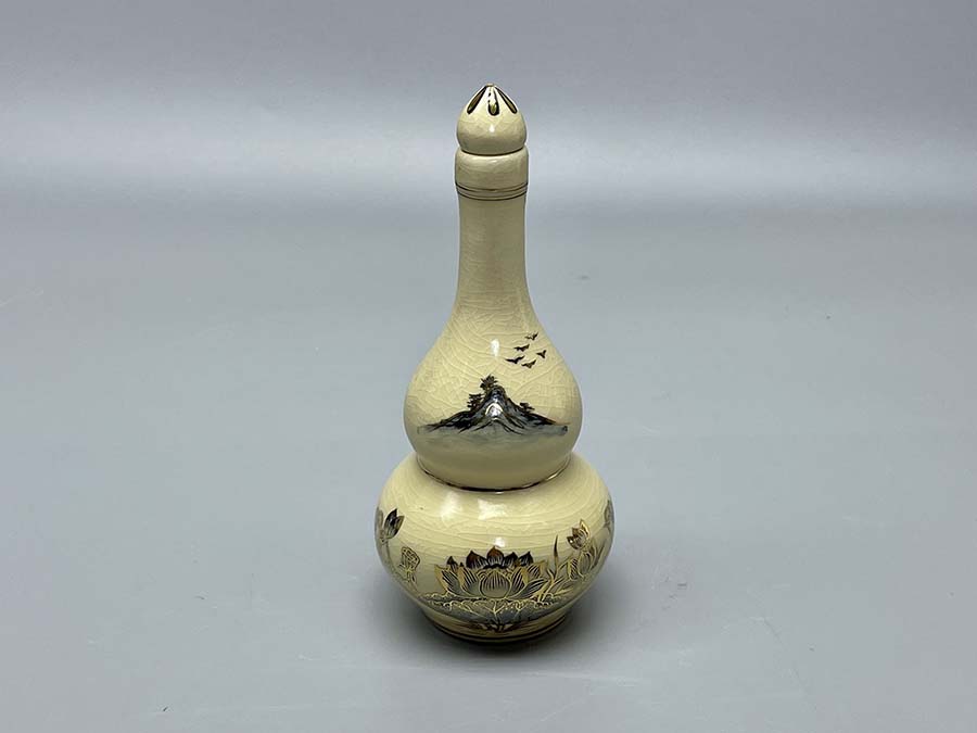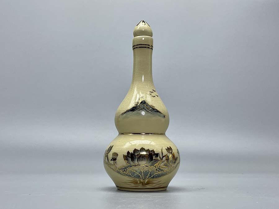 Nậm Rượu Họa Tiết Hoa Sen Gốm Chu Đậu Vẽ Vàng Kim