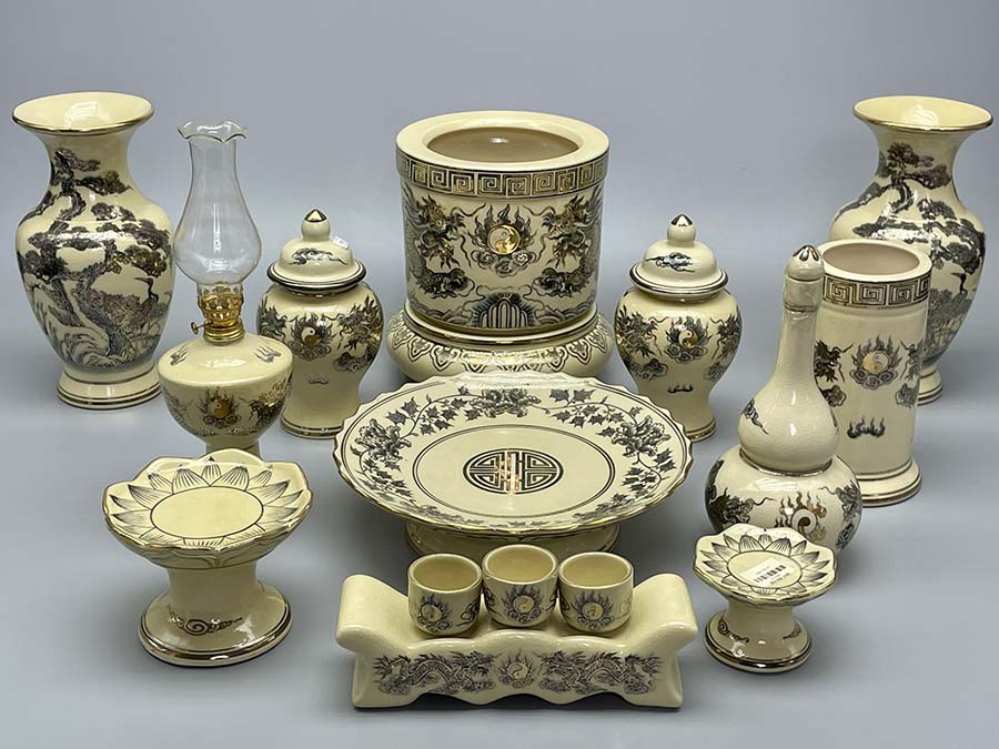 Bộ Đồ Thờ Bát Hương Họa Tiết Chìm Vẽ Vàng Kim