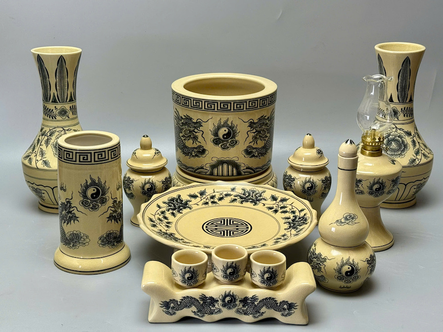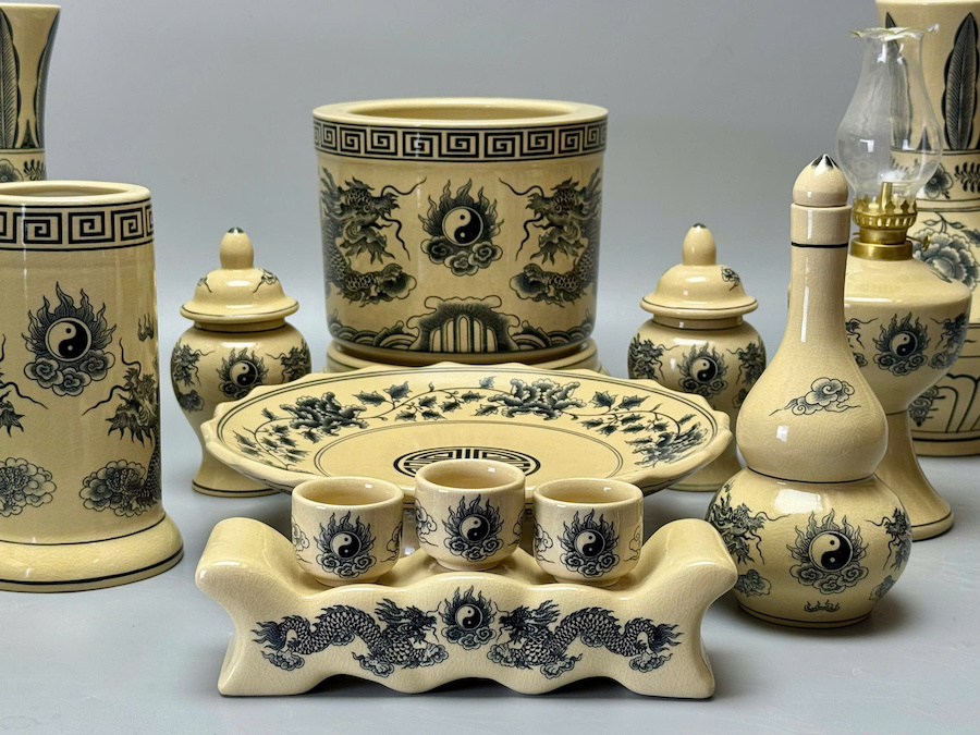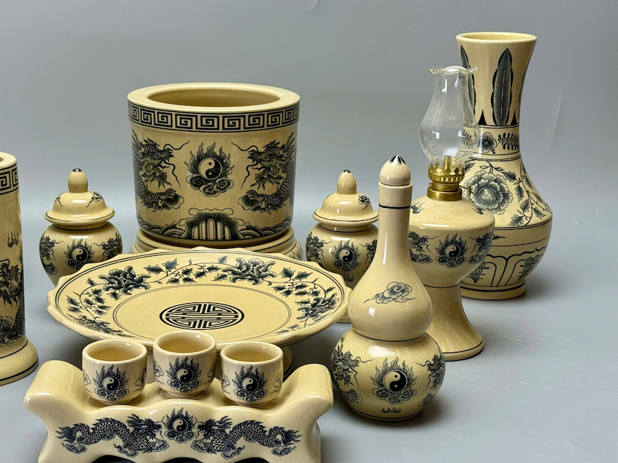SET Đồ Thờ Cho Ban Thờ 1,53m Hoạ Tiết Rồng Trầu Gốm Chu Đậu Truyền Thống