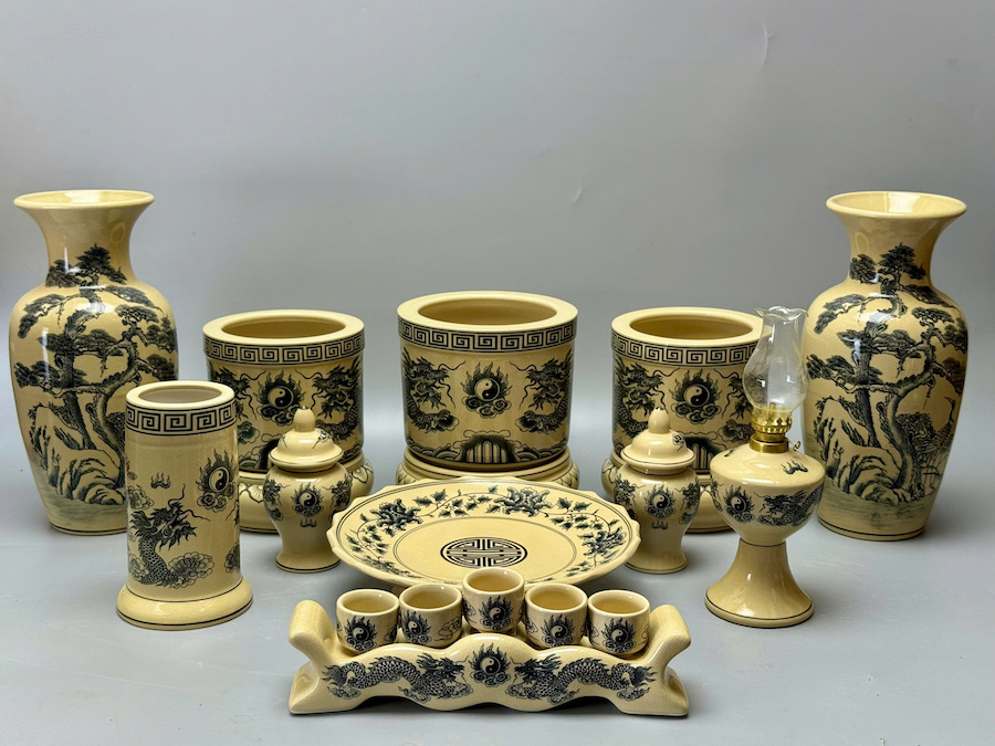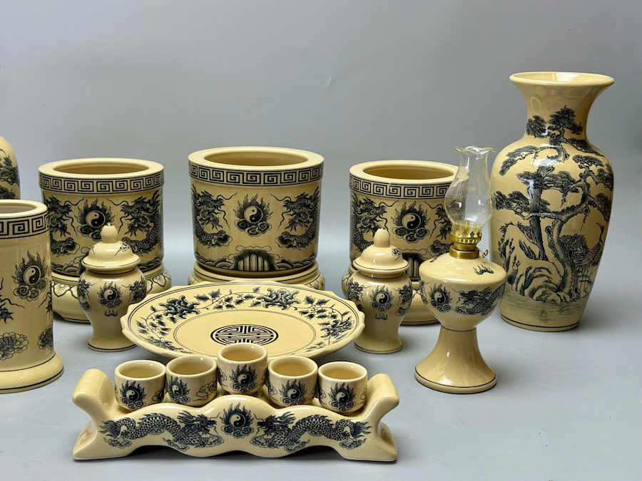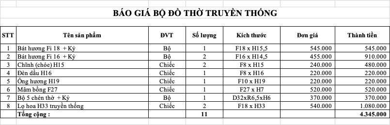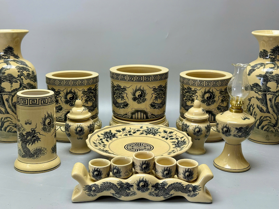 SET Đồ Thờ Cho Ban Thờ 1,57m Gốm Chu Đậu Truyền Thống